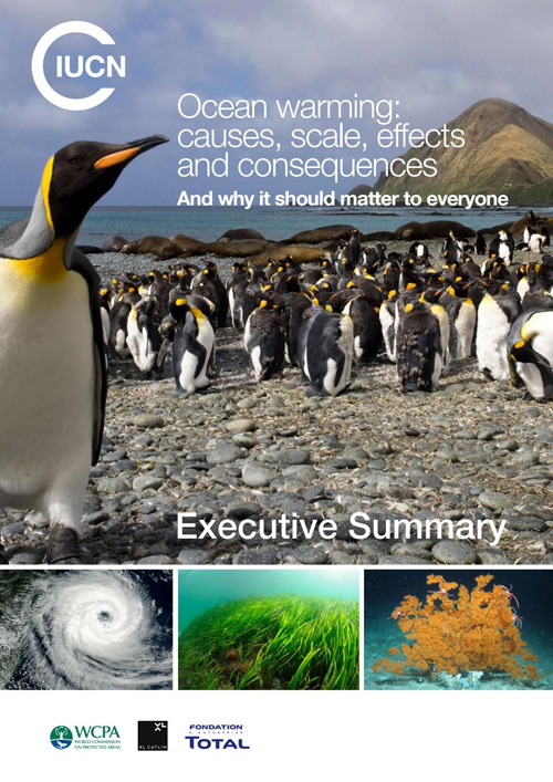 2016年9月5日,在美国夏威夷召开的世界自然保护大会上,世界自然保护联盟(IUCN)发表了一份题为《海洋变暖:成因、尺度、影响和后果》的报告。该报告指出,海洋变暖正对人类造成直接影响。受海洋变暖影响,捕鱼量和粮食产量减少,极端天气事件增加,水媒疾病风险加大。 海洋变暖的影响已经遍及极地至热带地区的所有生态系统,迫使浮游生物、水母、海龟和海鸟等海洋生物往极地方向迁移了纬度10°的距离。全球温度每升高1℃,强飓风数量将增加25%到30%。自20世纪70年代以来,人类活动导致的气候变暖中绝大多数热量(高达93%)均被海洋吸收,但海洋变暖可导致动植物疾病增加。