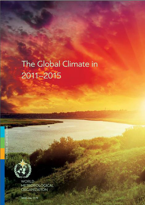 2016年11月8日,世界气象组织(WMO)发布了《2011-2015年全球气候报告》。报告指出这是有记录以来最热的五年,这五年的平均温度大约高出1961至1990年标准参照期平均温度0.57℃。地球大气中二氧化碳浓度在2015年首次达到了破纪录的400ppm。2015年全球平均海表温度达到历史最高值。2011至2015年,北极9月份的平均海冰面积为470万平方公里,较1981至2010年平均面积减少了28%。在过去60年中,全球海平面上升高度的40%左右归因于海洋温度升高。与1900至2010年海平面平均每年上升1.7毫米相比,自1993年有卫星记录以来到现在海平面高度平均每年增加3毫米左右。受人类活动导致的气候变化影响,2011至2015年极端天气气候事件频发,极端高温事件发生的概率增加到10倍及以上。