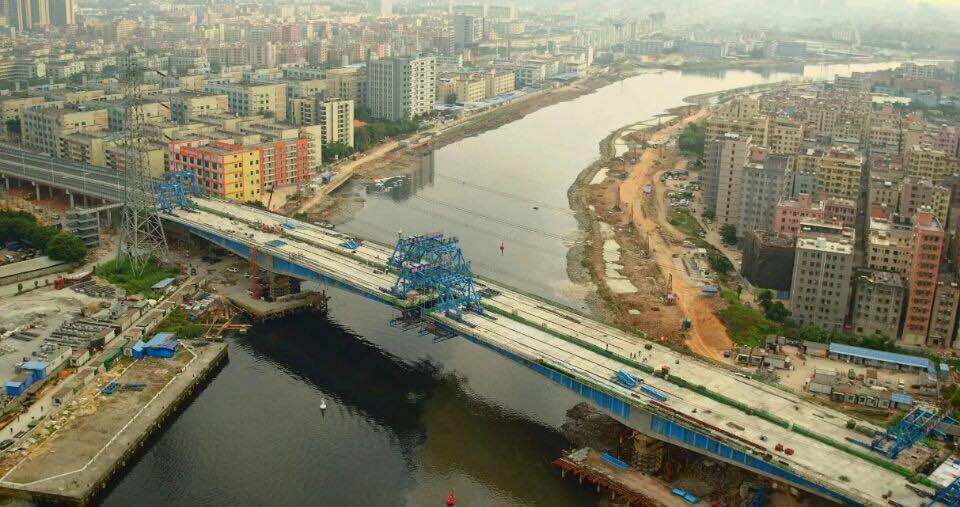 央广网深圳1月5日消息(记者胡晓辉 通讯员姬昆生 崔振江)1月5日01:50分,由中铁七局郑州公司承建的深圳东宝河新安大桥主桥右幅顺利浇筑完成合龙段,桥体全面贯通。本次合龙施工是国内首次在大跨度波形钢腹板PC组合箱梁桥中采用“钢腹板和平板钢底板”组合结构的施工工艺。