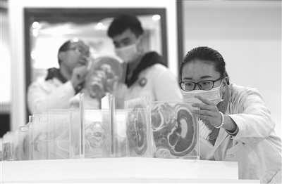 1月5日,成都医学院解剖楼,学生们正在观察人体标本。人体标本是医学教育的生动教材,是医学生泛舟学海的“无语良师”。成都医学院创建了国内一流的解剖楼,对学生进行生命教育和实践教学。