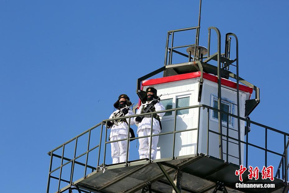 新疆军区塔克什肯边防连执勤哨兵坚守在神圣哨位。 段玮 摄