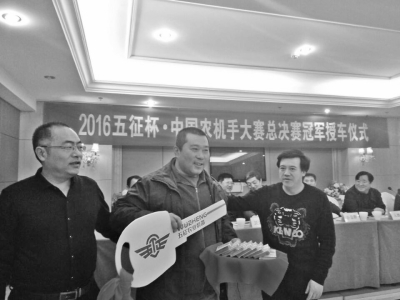 “俺是靠农机手大赛一举成名的!去年参加农机手大赛,获得了10万元奖金和五征1304大马力拖拉机,我们区里还给了我们合作社2万元的奖励。”近日,在2016年农机手大赛全国总冠军授车仪式上,来自辽宁省大连市旅顺口区的机王李永锋接过了组委会颁发的奖金和拖拉机钥匙。