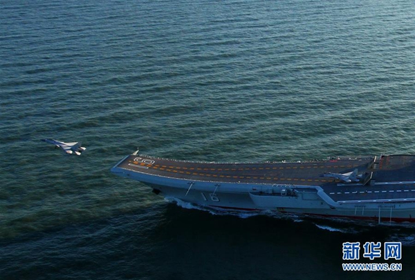 2017年1月1日,辽宁舰与数艘驱逐舰组成的编队,携带多架歼-15舰载战斗机和多型舰载直升机在南海演练,中国南海上空首次迎来“飞鲨”身影,这也是歼-15舰载机实现在中国四大海域起降航母。