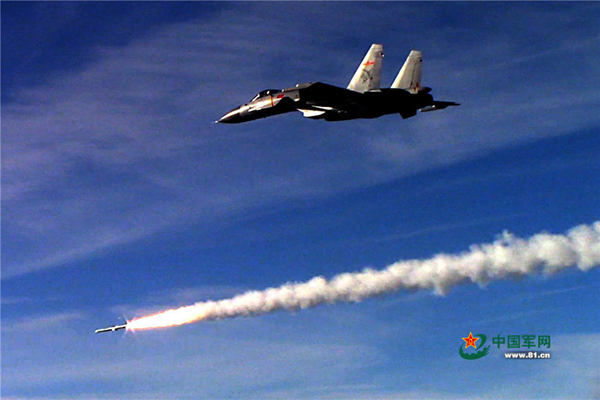 歼-15舰载战斗机发射导弹(视频截图)