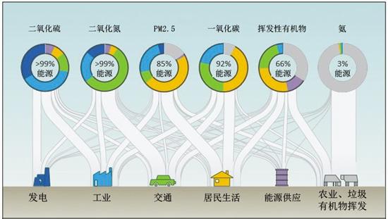 2015年各领域对空气污染物的贡献(来源:国际能源署)