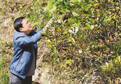 图为陈宜忠在农场修剪果树。这是发展林下经济的一部分。