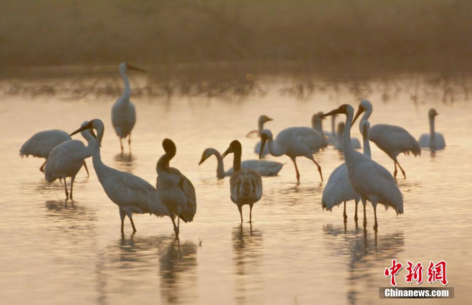 1月13日,江西鄱阳湖畔的五星垦殖场,许多在此越冬的白鹤等珍禽候鸟嬉戏觅食。据了解,每年占世界总数95%以上的白鹤、50%的白枕鹤、60%的鸿雁都在被誉为“候鸟天堂”的鄱阳湖区越冬。每年这个季节,也会有很多喜爱候鸟的游客及摄影爱好者在此观鸟和拍摄。 段八一 摄