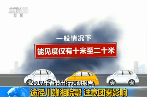 公安部交管局特别提醒,途径四川、江西、湖南、安徽、湖北高速公路的群众,应注意“团雾”天气对驾驶安全的影响。“团雾”是一种比雾更浓、能见度更 低的雾,一般情况下能见度仅有十米至二十米,团雾高发地的高速路段受其影响,较易出现事故。根据公安部交管局2016年高速公路团雾高发统计数据,春运期 间上述5省是“团雾”天气现象的高发省份,最易发生时间在0点至8点左右,夜间行驶尤其应该注意安全。