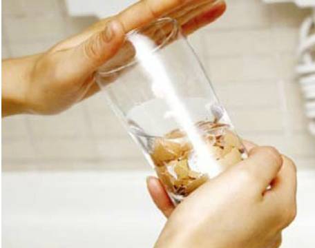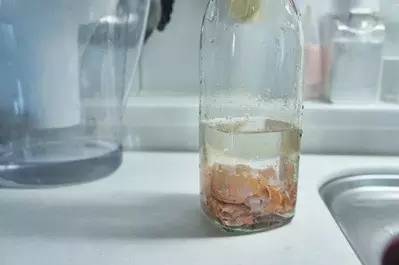 把鸡蛋壳洗干净捏碎丢进瓶中