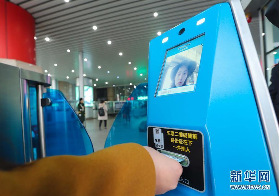 1月17日,旅客在北京西站“刷脸进站”。 2016年12月,北京西站在部分通道正式启用自助验证验票系统,旅客持车票和身份证,通过人脸识别技术确认之后,可以进站候车。这个系统提高了验证验票效率,助力2017年春运。 新华社记者 邢广利 摄
