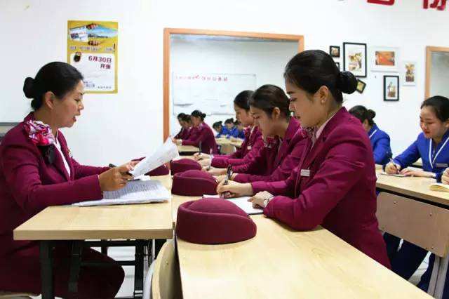 谢安平在组织班组乘务员学习业务。
