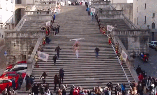 近日,在西班牙的赫罗纳,来自越南的两兄弟在赫罗纳教堂前,用52秒的时间登上90级台阶,创造了双人头顶头登台阶的吉尼斯纪录。