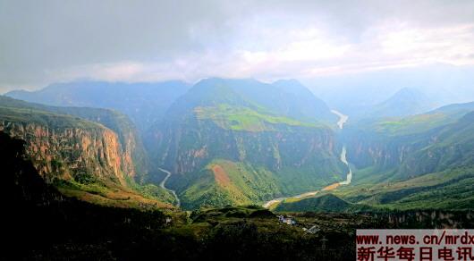俯瞰峡谷间的阿布洛哈村(2017年1月5日摄)。 新华社记者江宏景摄