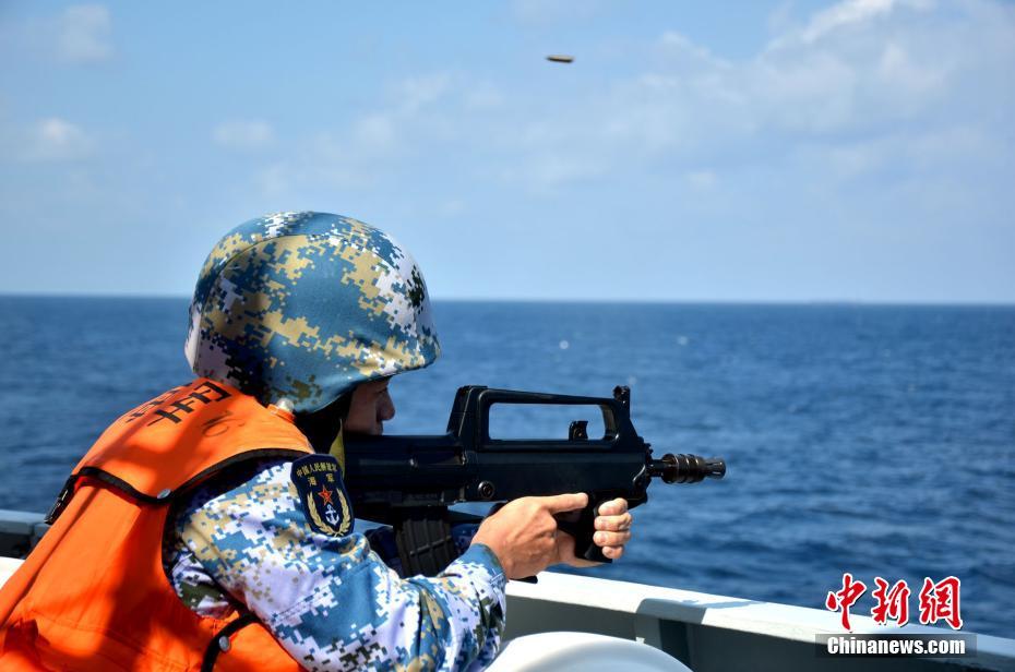当地时间1月22日,中国海军第二十五批护航编队在亚丁湾海域,组织护航兵力进行实战条件下的轻武器实弹射击演练,检验并提高护航兵力反海盗武器装备的综合作战效能。图为实施火力打击。