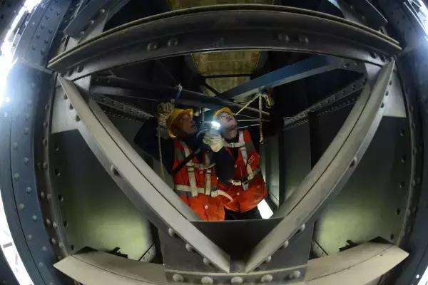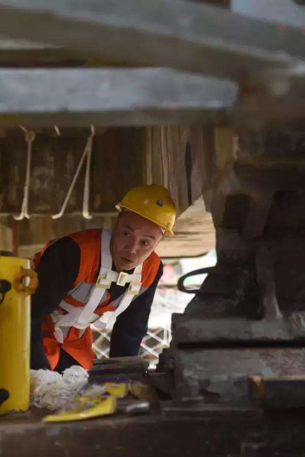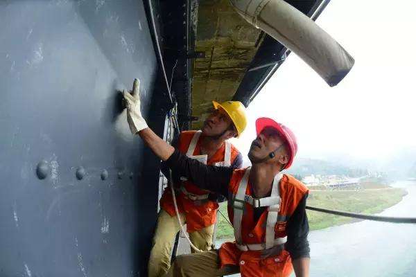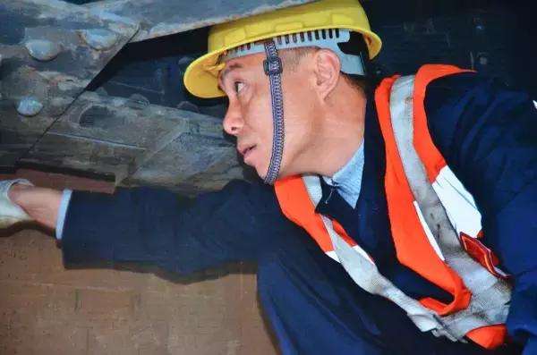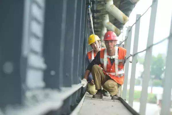 谢小华聚精会神的查看乌江大桥的每一颗螺丝钉