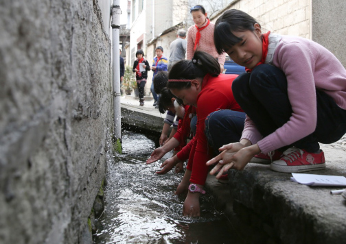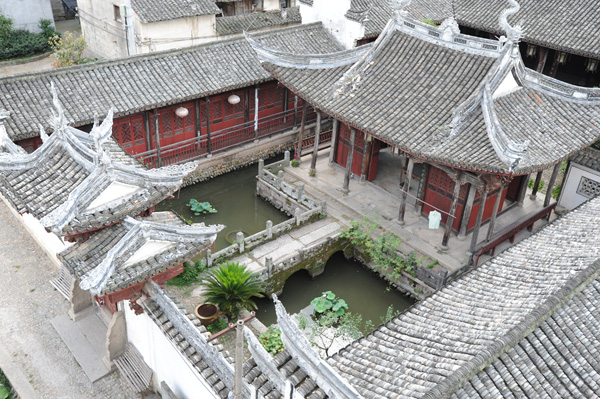 九曲水圳,总长约357米,至今已有500多年历史,为王羲之三十六世孙王琼之妻石氏捐资修建,由暗渠、明沟、埠头、塘、井立体交叉组成,形成独立完善的供、排水系统。九曲水圳既可以让村民在沿途埠头取水与洗涤,又可以灌溉村里1000多亩稻田。王氏族谱中记有严格的管水条例,村民分时段、分功能用水,并相互监督,违者要按族规处罚。至今水圳仍完好无损、清流如故,靠的就是“规矩”二字。
