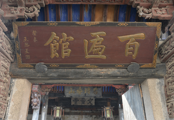 华堂村屋舍精丽,山水清妙,举目望去,青山四合,流水环绕。飞檐翘角的殿宇与青砖灰瓦的民居参差错落,上书“书圣”二字的石牌坊巍然耸立。