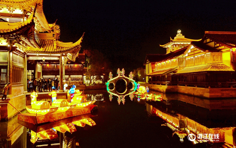 新春佳节将至,绍兴柯岩鲁镇新年灯会璀璨亮相。鲁镇新年灯会以绍兴历史文化的人文典故为主题,在火树银花丛中,彩蝶翩翩起舞,演绎梁山伯与祝英台的爱情传奇;红色的陶坛倾酒玉露琼浆,讲述越王勾践卧薪尝胆、投醪劳师的故事;《大禹治水》、《兰亭集序》、《孔乙己》为主题的灯组,流动着越文化的深厚底蕴;吉象贺春、牵网捕鱼、祭祀灶神,挥笔书福,勾画着“梦里水乡”,展示绍兴民俗风情的迷人魅力。(浙江在线通讯员 袁云 摄)