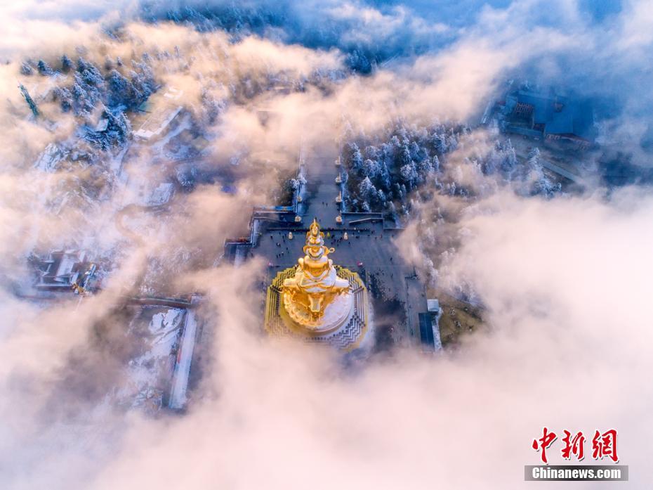 峨眉山金顶云雾缭绕 佛光再现美轮美奂