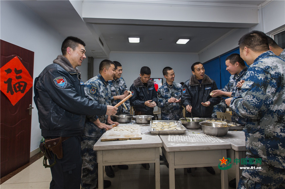 就算除夕夜包饺子,飞行员的配枪也始终挂在腰间,随时准备升空。杨盼摄影