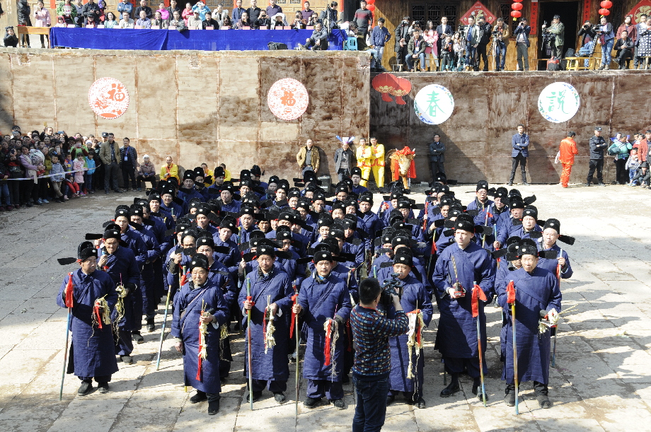 北斗七星水里连天十四点,南楼孤雁月中带影一双飞。2月4日,石阡县“温泉送健康·毛龙迎新春”春节文化系列活动之“百名春官劝农耕”在石阡县国荣乡楼上古寨隆重举行。