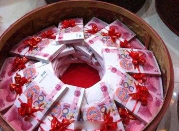 更有甚者,一些农村彩礼频出“天价”。“万紫千红一片绿”(一万张5元钞票、一千张100元钞票和若干张50元钞票)、“一动不动”(一辆汽车、一套楼房)、“三斤三两”(三斤三两重的100元钞票)、“一二三四五”(一个院落、二层小楼、三斤重的100元人民币、四轮汽车、50岁以下双亲)等“新词新说”成了这一现象的真实写照。