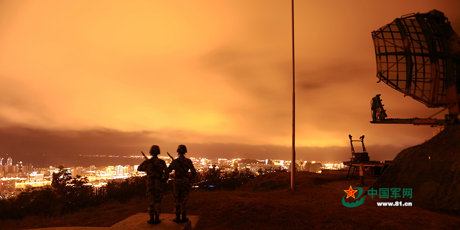 1月31日,海南三亚被浓浓的年味笼罩着,南海舰队某防空旅营区内却战味十足。山下华灯璀璨,火树银花。官兵们在山头阵地默默守望星空,战备执勤。始终保持良好的战备状态。骆以汉 摄