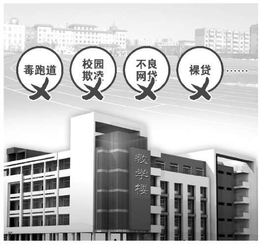 在《学校安全:2016年新闻舆论分析与2017年风险防治建议》中,2016年涉及学校安全的新闻舆论关键词被概括为:“毒跑道”、校园欺凌、不良网贷、裸贷等。