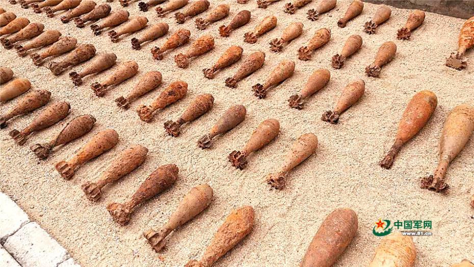 近日,在云南省麻栗坡县八里河东山,云南省军区扫雷指挥部官兵正在这里执行边境扫雷任务。图为扫雷队清理出来锈迹斑斑的炮弹已有数万枚。 记者 李东航 王庚 庞云豪 严浩 图片来源:中国军网