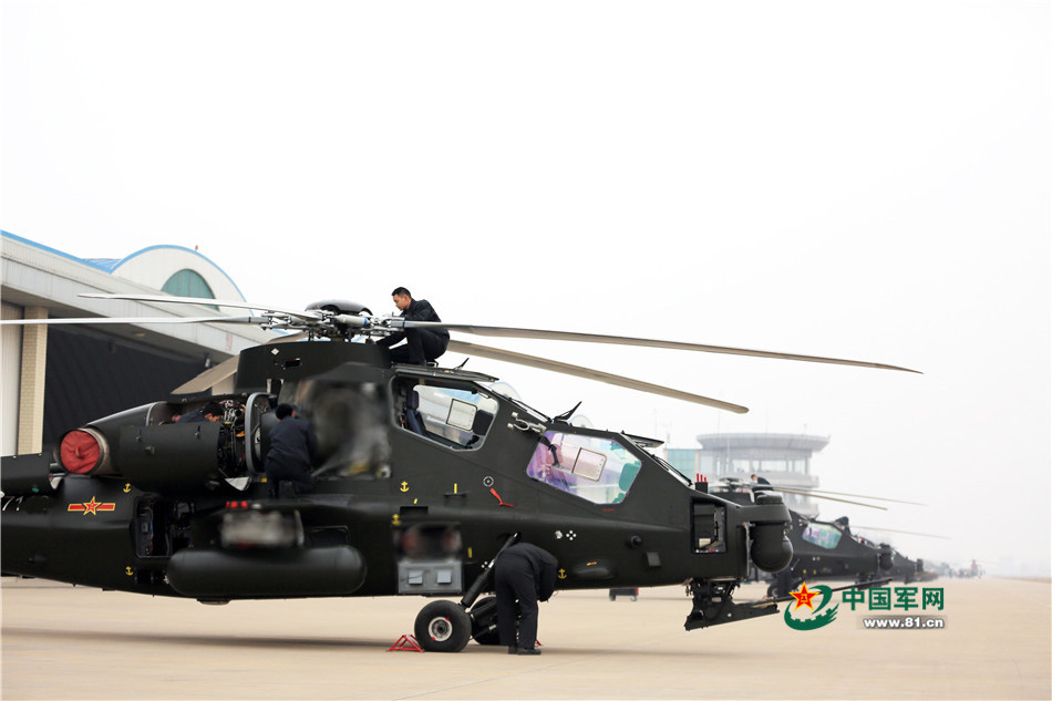 针对当前季节特点,陆军第26集团军某陆航团对直升机进行机务检查。何兵摄影