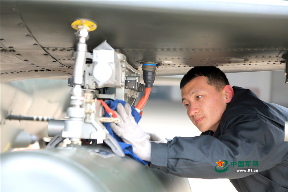 针对当前季节特点,陆军第26集团军某陆航团对直升机进行机务检查。何兵摄影