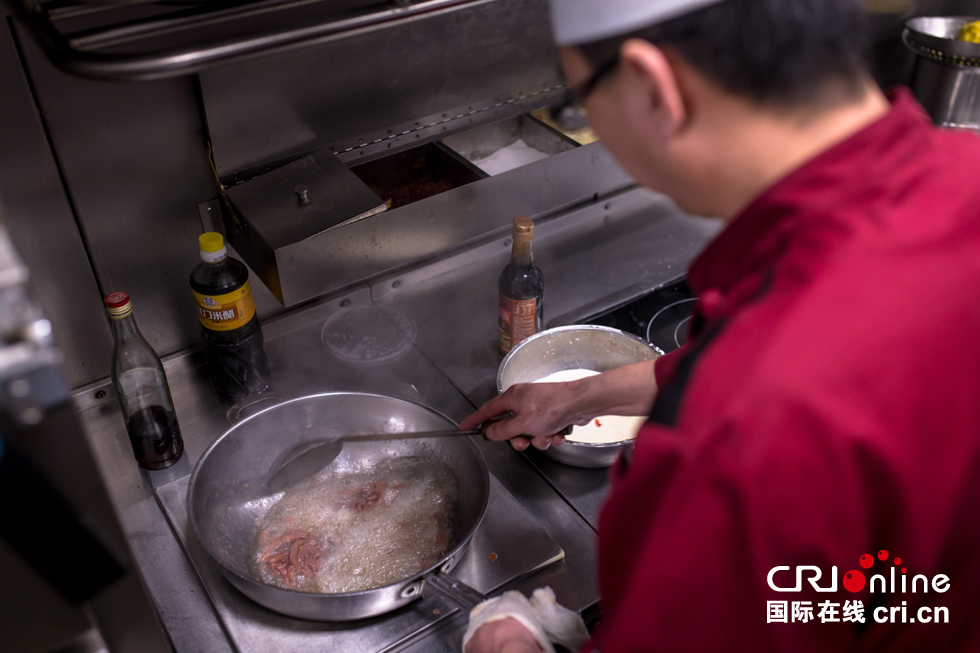 “5份杭椒牛柳套餐,哥几个都忙起来啊,牛柳可以多滑点。”白师傅招呼着厨房里的两个老搭档。杭椒牛柳是这趟车点单率比较高的套餐之一。