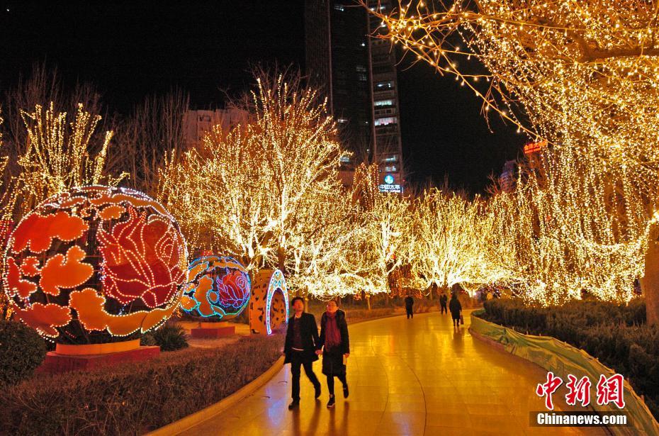2月9日,正月十五将近,天津街头流光溢彩的实景灯光,让民众感受到浓浓的节日气氛。 中新社记者 佟郁 摄