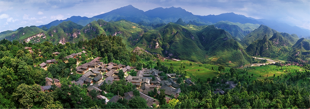 楼上古寨位于贵州省石阡县城西南的廖贤河畔,距县城15公里。