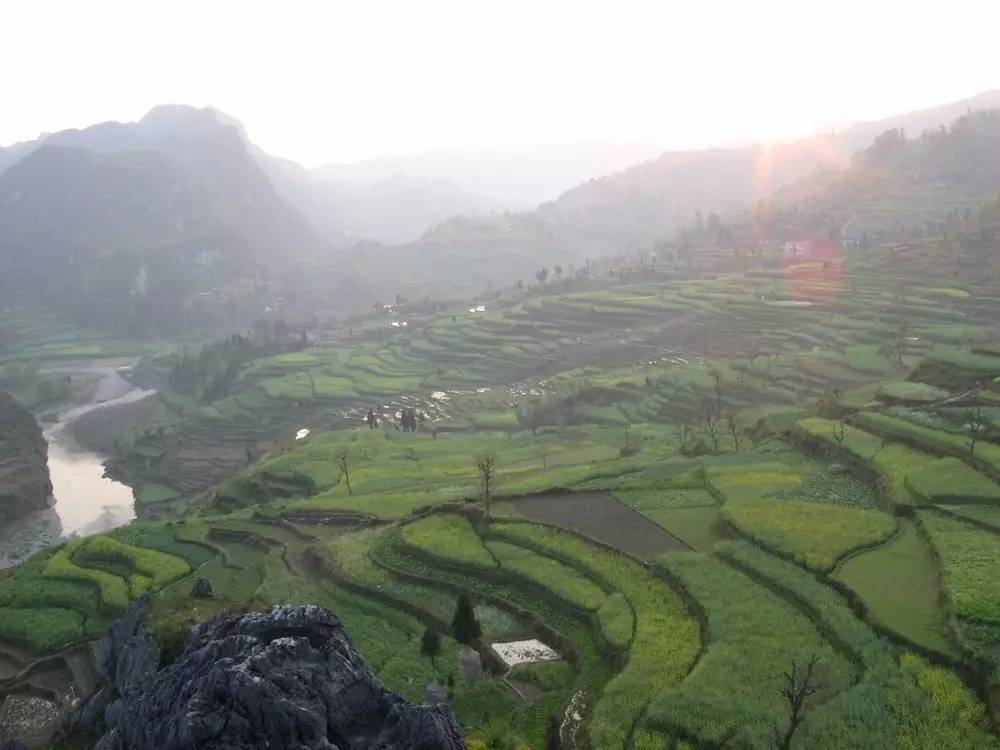 古寨的前面是波平如镜的梯田,一直延伸到廖贤河边。