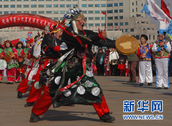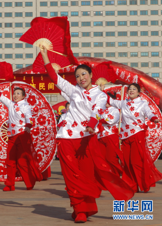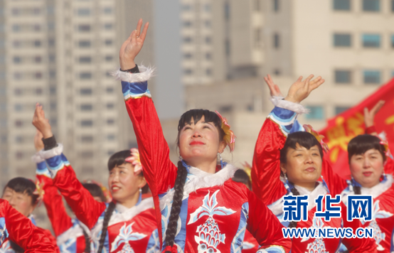 11日,辽宁省抚顺市召开第十九届民族民间舞蹈大赛。期间,国家级非物质文化遗产抚顺地秧歌表演精彩亮相。新华网 朴锦花 摄