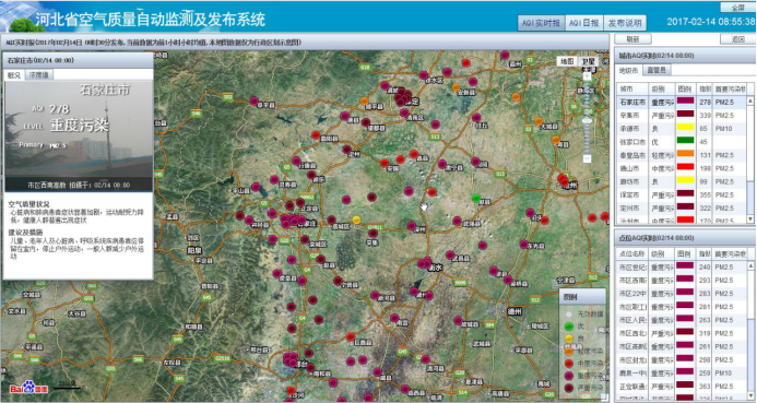 河北省空气质量自动监测及发布系统截图。