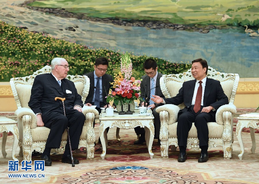 2月16日,国家副主席李源潮在北京会见应全国友协邀请访华的英国怡和集团主席亨利·凯瑟克爵士。 新华社记者 饶爱民 摄