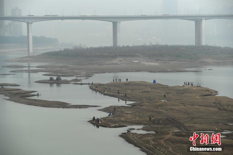 长江枯水期 大片河床裸露成重庆市民娱乐地
