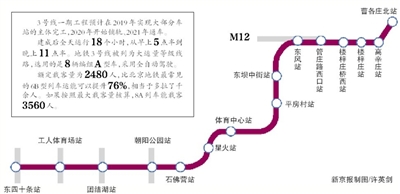 新京报讯 (记者郭超)在北京在运营地铁里,3号线缺位曾引起不少猜测,近期,3号线传来最新进展,3号线一期已经全面开工建设。据悉,3号线一期预计2021年通车。届时,在新线行驶的将是最大载客量达3560人的8A型车,同时将采用全自动驾驶。