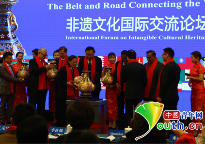 今年1月,中共中央办公厅和国务院办公厅共同印发了《关于实施中华优秀传统文化传承发展工程的意见》。《意见》中明确表达了关于传承中华优秀文化,让传统文化遗产活起来、传下去的指示精神,强调了坚持创新性转化、创新性发展的原则。本次论坛以承载“一带一路”丝路文化内涵的文化国礼为媒介,助力搭建“一带一路”沿途65个国家大使访谈的桥梁,传达中国人民愿与“一带一路”沿途国家互通有无、优势互补、共享机遇、共迎挑战、实现共同繁荣与发展,助力丝路文化传承延续、再续新篇的美好愿景。论坛结束后,后续还将举办《“四海同心”丝路情》非遗主题系列活动。
