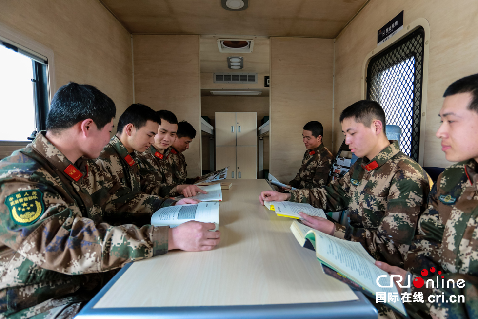 休息时间,官兵坐在一起看看杂志,相互交流杂志上有趣的内容。除了看杂志偶尔也会组织官兵看电影,打牌等,以丰富官兵的日常生活。