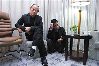 2013年3月26日,浙江叔侄奸杀冤案获平反后,张高平(左)和侄子张辉向记者讲述这些年的遭遇。当年5月17日,浙江省高院共向叔侄二人支付国家赔偿221.14万元。图/视觉中国