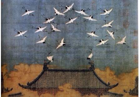 据史载,1112年正月十六,都城汴京上空忽然云气飘浮,群鹤飞鸣于宫殿上空,久久盘旋,不肯离去,两只仙鹤竟落在宫殿左右两个高大的鸱吻之上。此景恰好被宋徽宗看到,他当即提笔画下了《瑞鹤图》。目前在博物馆收藏的宋徽宗画作有《芙蓉锦鸡》、《池塘秋晚》、《四禽》、《雪江归棹》等。
