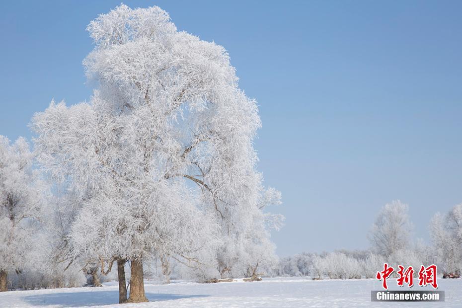2月27日,受一股冷空气的影响,位于新疆生产建设兵团第十师北屯市境内的额尔齐斯河流域出现唯美雾凇景观,周围的植被经雾凇装点过后,如梦如幻,晶莹剔透的树枝在风中摇曳着优美的身姿,恍如冰雪童话世界。陈洋 摄