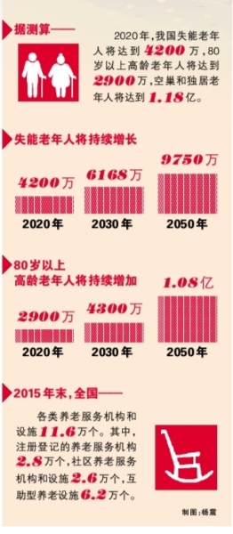 民政部公布的数据显示,截至2015年底,我国60岁及以上老龄人口已达2.22亿人,占总人口的16.1%。这说明我国已经进入老龄社会,这一趋势将在未来三十年呈加剧态势。