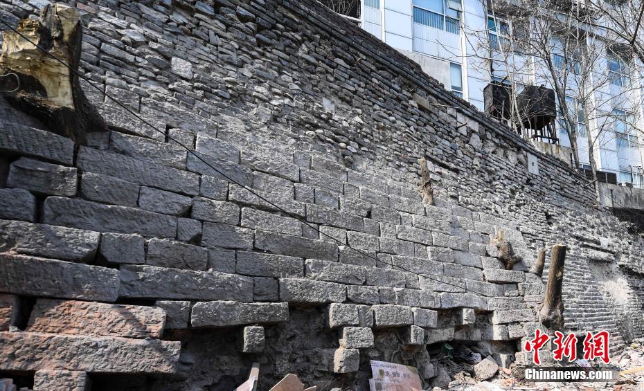 3月16日,为保护古城墙,寄生在古城墙上的树被伐。当日,一段有着600余年历史的古城墙残壁现身济南西城根街,吸引许多民众前来观赏。据了解,拆除违章建筑显露的古城墙残壁,墙体长约15米,高约6米,上部由青灰色砖垒成,下部由大块石条砌成,是济南市最后一处保存较好的明代城墙。 中新社记者 张勇 摄
