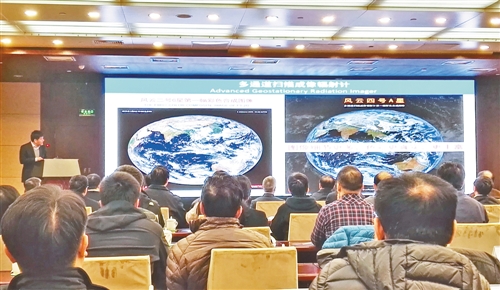 国防科工局、中国气象局联合举行发布会,风云四号首图出炉。本报记者 杜芳 摄