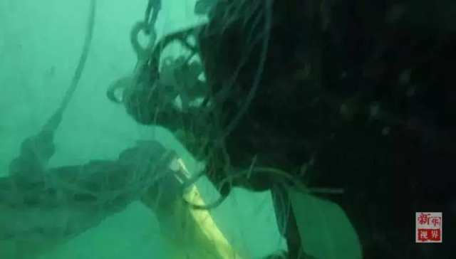 △3月15日,潜水员下海固定抹香鲸尸体。