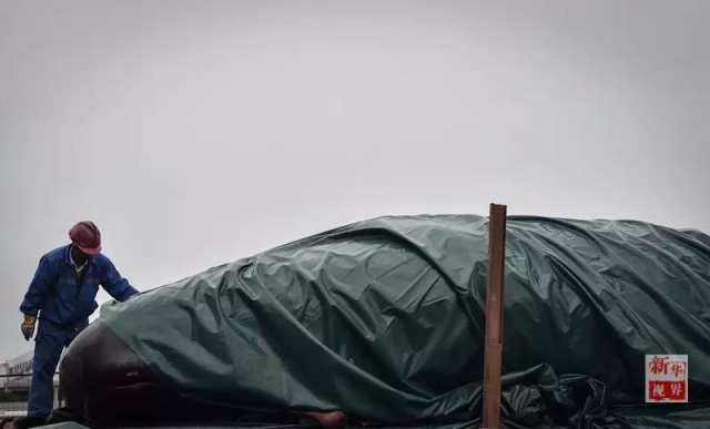 △3月15日,工作人员正在覆盖抹香鲸的头部。
